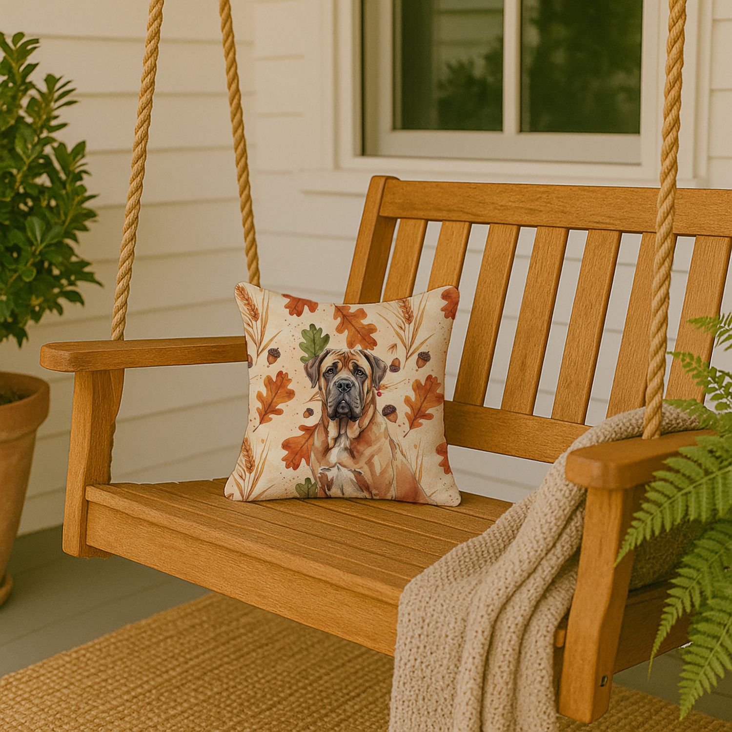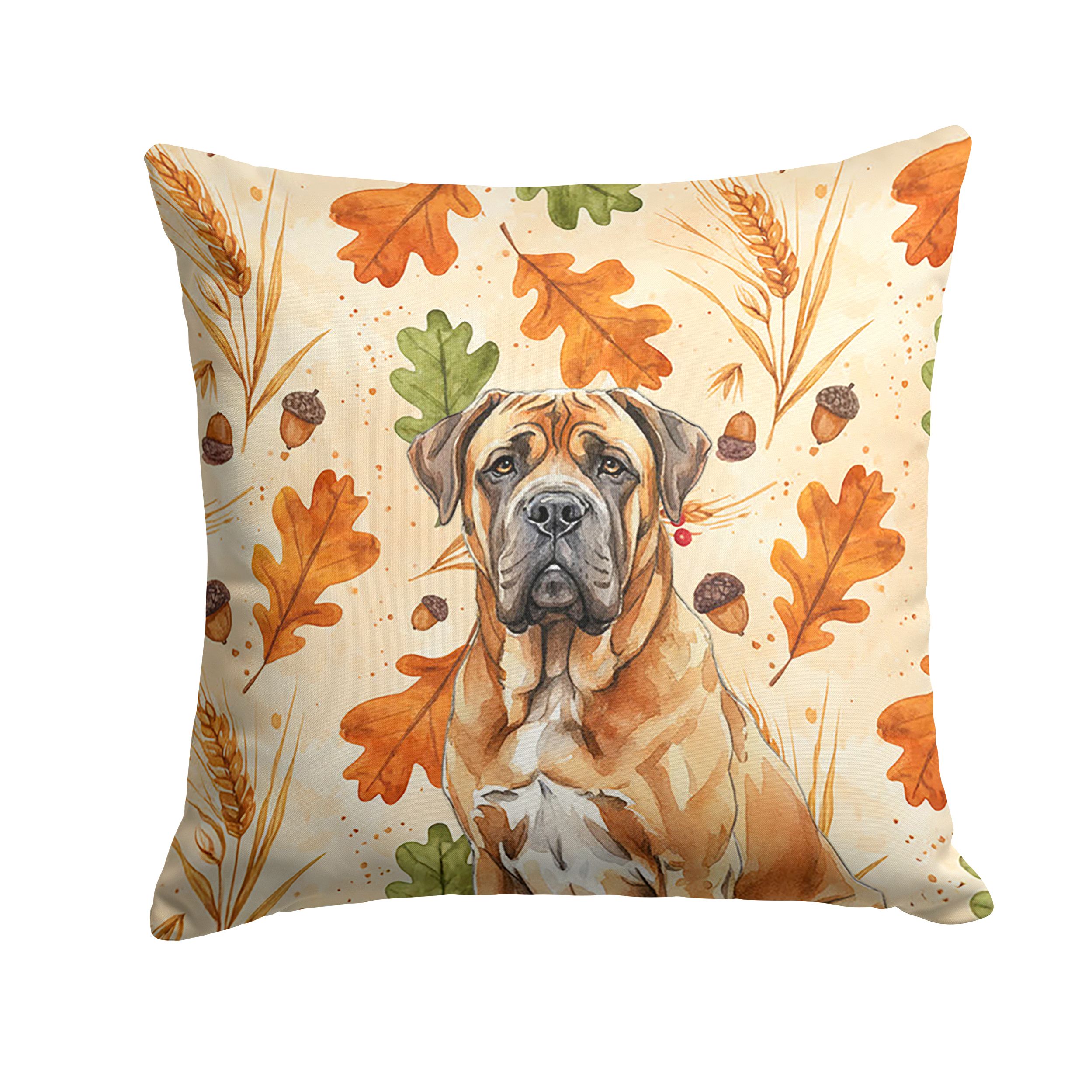 Throw Pillow featuring breed specific Neapolitan Mastiff artwork. Celebrate Thanksgiving with this Thanksgiving Pillow. Add a touch of vibrancy and comfort to your outdoor seating with Caroline's Treasures Fabric Decorative Pillow. Measuring approximately 14 inches by 14 inches, this outdoor pillow is crafted to elevate the appeal of your patio furniture, infusing it with vivid color and artistic flair. The pillow includes a 100% Polyester Fabric sham filled with a quality pillow form to provide superior comfort. Innovatively made from our brand new material, specifically woven for its water resistance, this pillow is designed for durability. The soft canvas fabric offers versatility in use, fit for your indoor couch or your outdoor patio, porch, or veranda. The fabric is dyed with colorfast dyes built for resilience against weather conditions, ensuring the pillow retains its beauty over time. Constructed by sewing three fabric pieces to create a sham, the polyester insert is then nestled inside to form the pillow, resulting in an overstuffed pillow that maintains its shape. Both the sham and the pillow insert are proudly made in the United States. As the pillows are handcrafted, there may be minor variations in size, further enhancing their unique charm. Experience comfort in style with Caroline's Treasures Fabric Decorative Pillow.