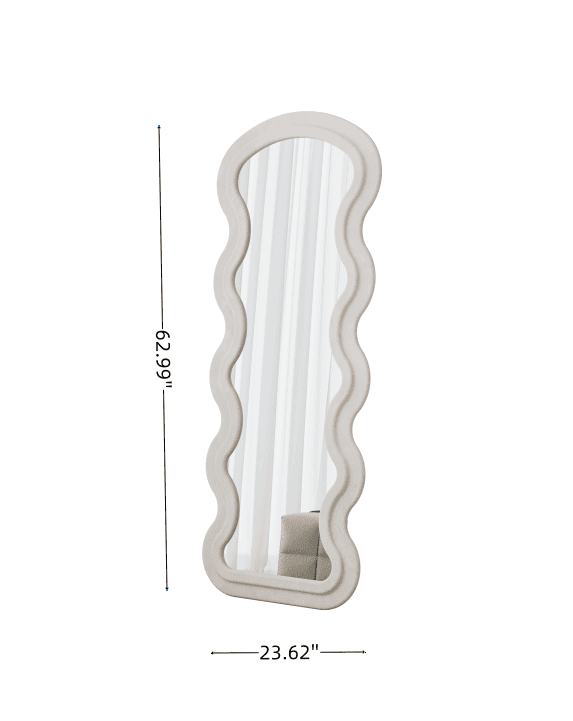 Flannel Full Length Wave Floor Mirror for Bedroom living room Hanging or Against The Wall(white)