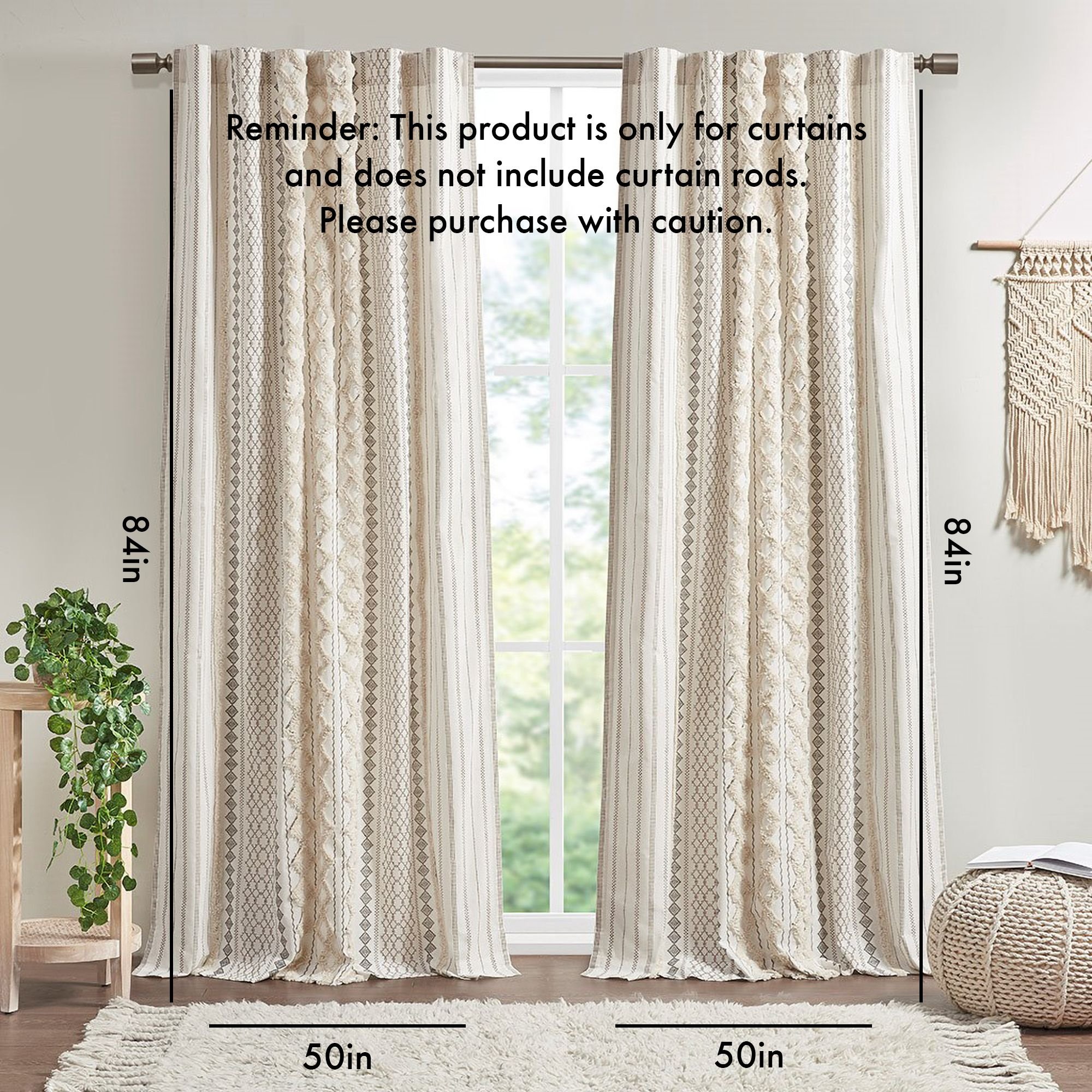 The Imani Cotton Printed Window Panel with Chenille Stripe and Lining offers a chic and casual update to your home. This ivory window panel features a geometric print with a tufted chenille stripe trim, for a textured artisanal look and feel. A lightweight white cotton lining on the reverse softly filters light, while providing better drapability and added privacy. In addtition, this 100% cotton curtain panel is also OEKO-TEX certified, meaning it does not contain any harmful substances or chemicals for the best in quality comfort and wellness. Each panel is finished with a rod pocket top for easy hanging, and back tabs for a more clean and tailored finish. This window panel is sold as a single and 2 window panels must be purchased to cover any standard size window. Complete the look with coordinating bedding sets and bath decor, available and sold separately.