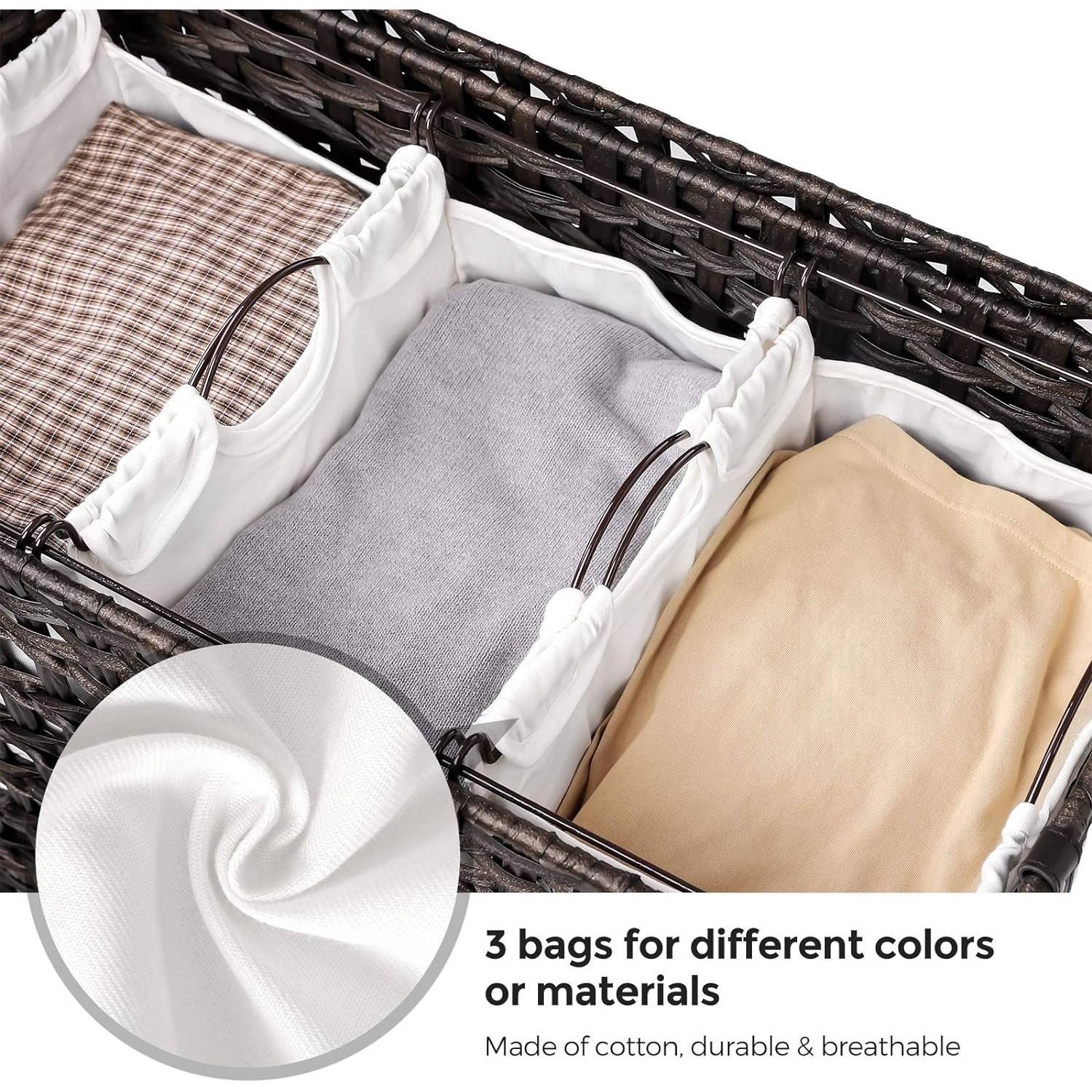 PP Rattan 3-Basket Laundry Hamper Sorter Cart with Removable Cotton Bags PP Rattan 3-Basket Laundry Hamper Sorter Cart with Removable Cotton Bags PP Rattan 3-Basket Laundry Hamper Sorter Cart with Removable Cotton Bags PP Rattan 3-Basket Laundry Hamper Sorter Cart with Removable Cotton Bags PP Rattan 3-Basket Laundry Hamper Sorter Cart with Removable Cotton Bags
