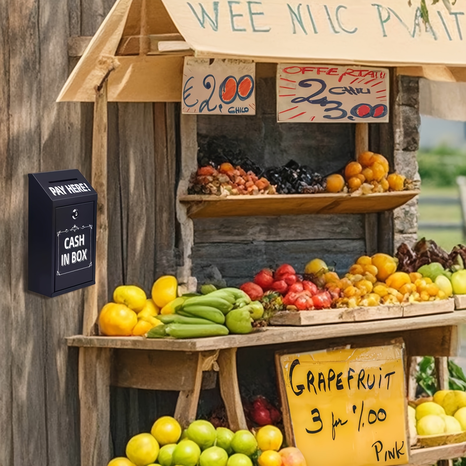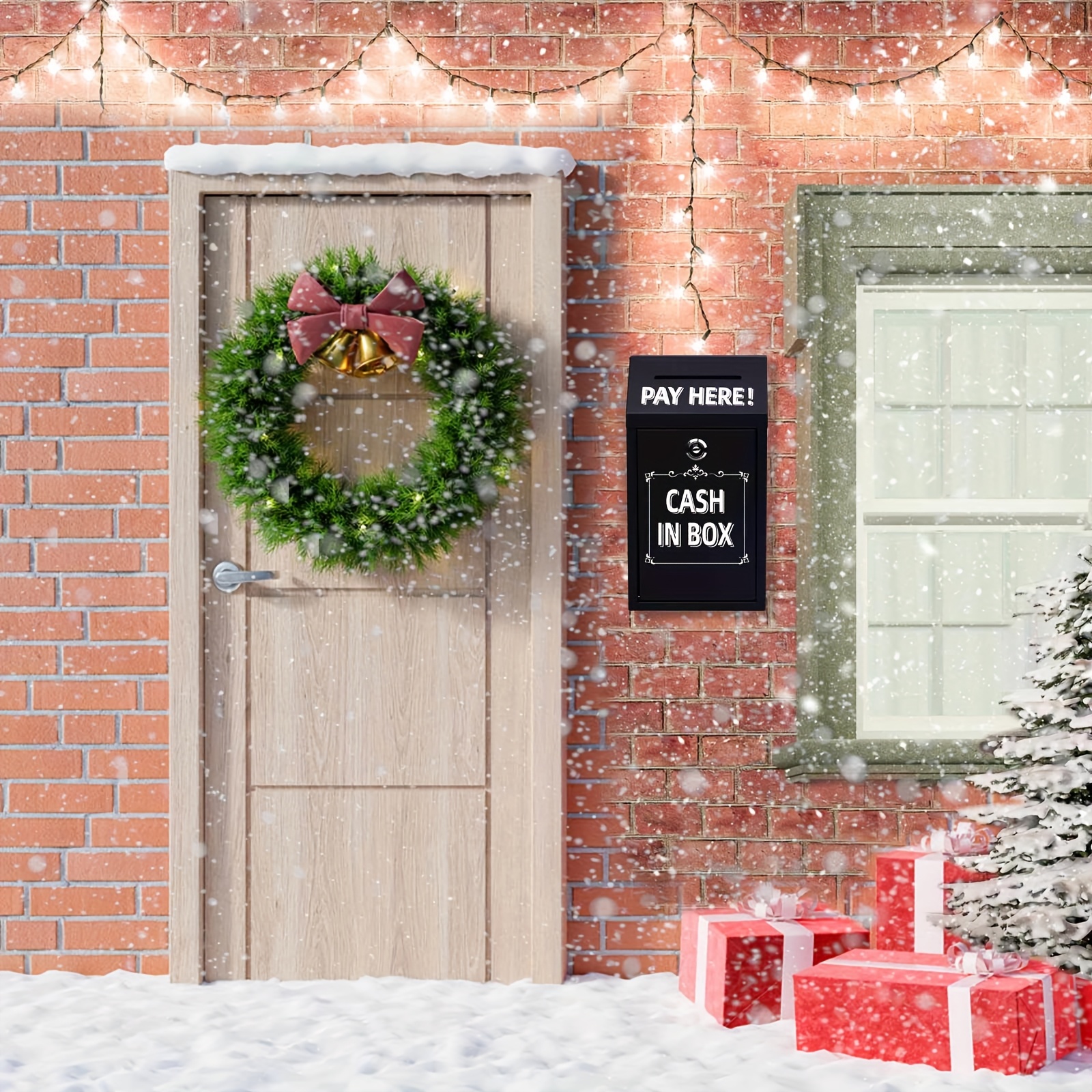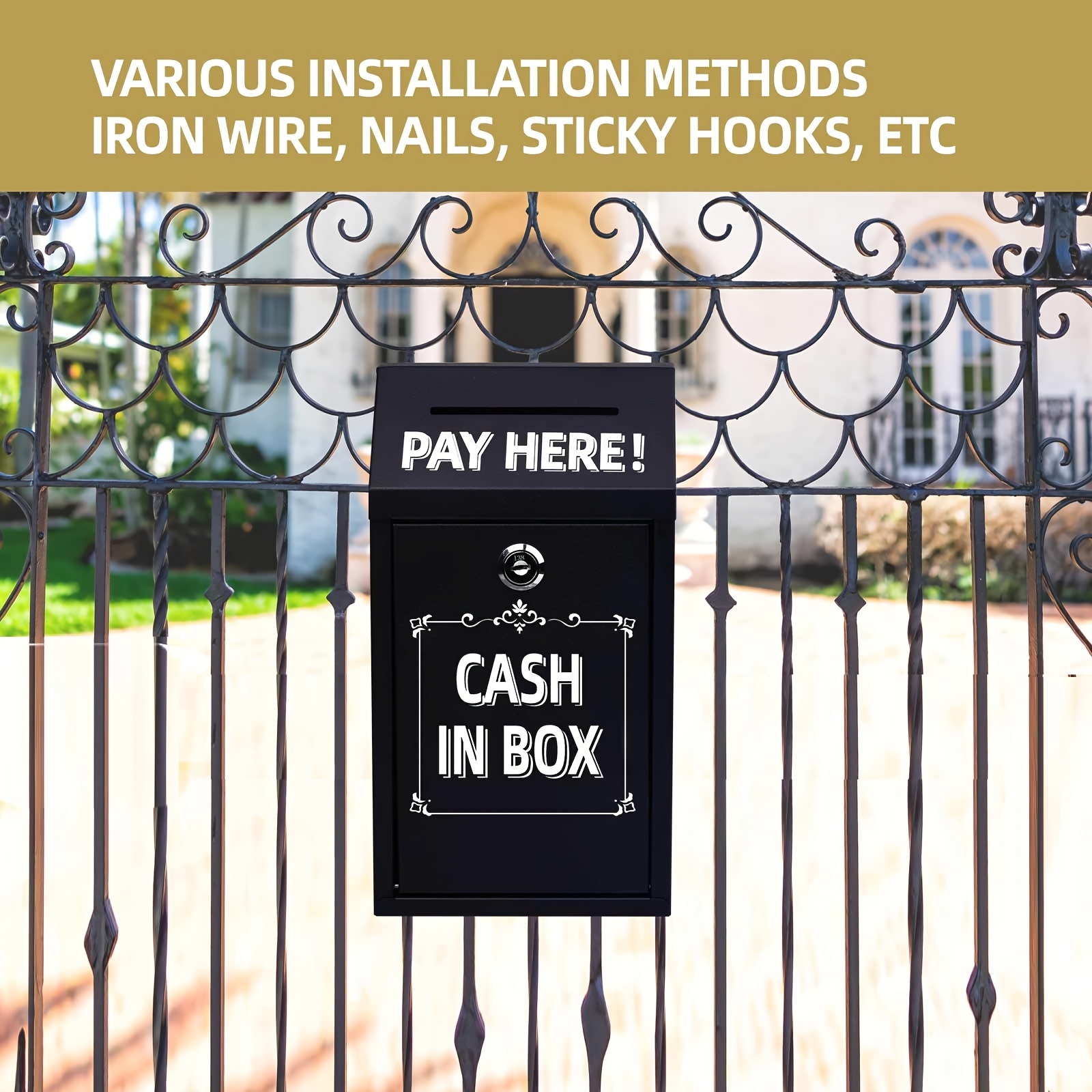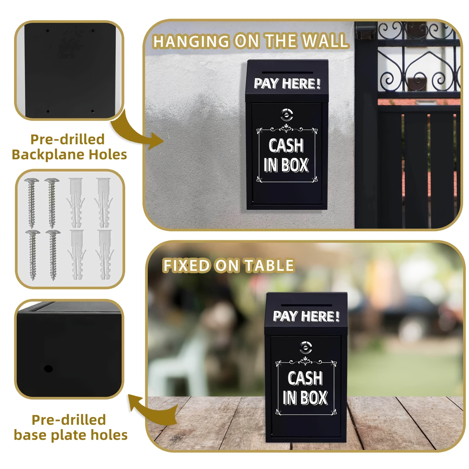 Wall-Mounted Metal Coin Box With Lock And Key - Suitable For Home, Office, Or Outdoor Donations,BLACK