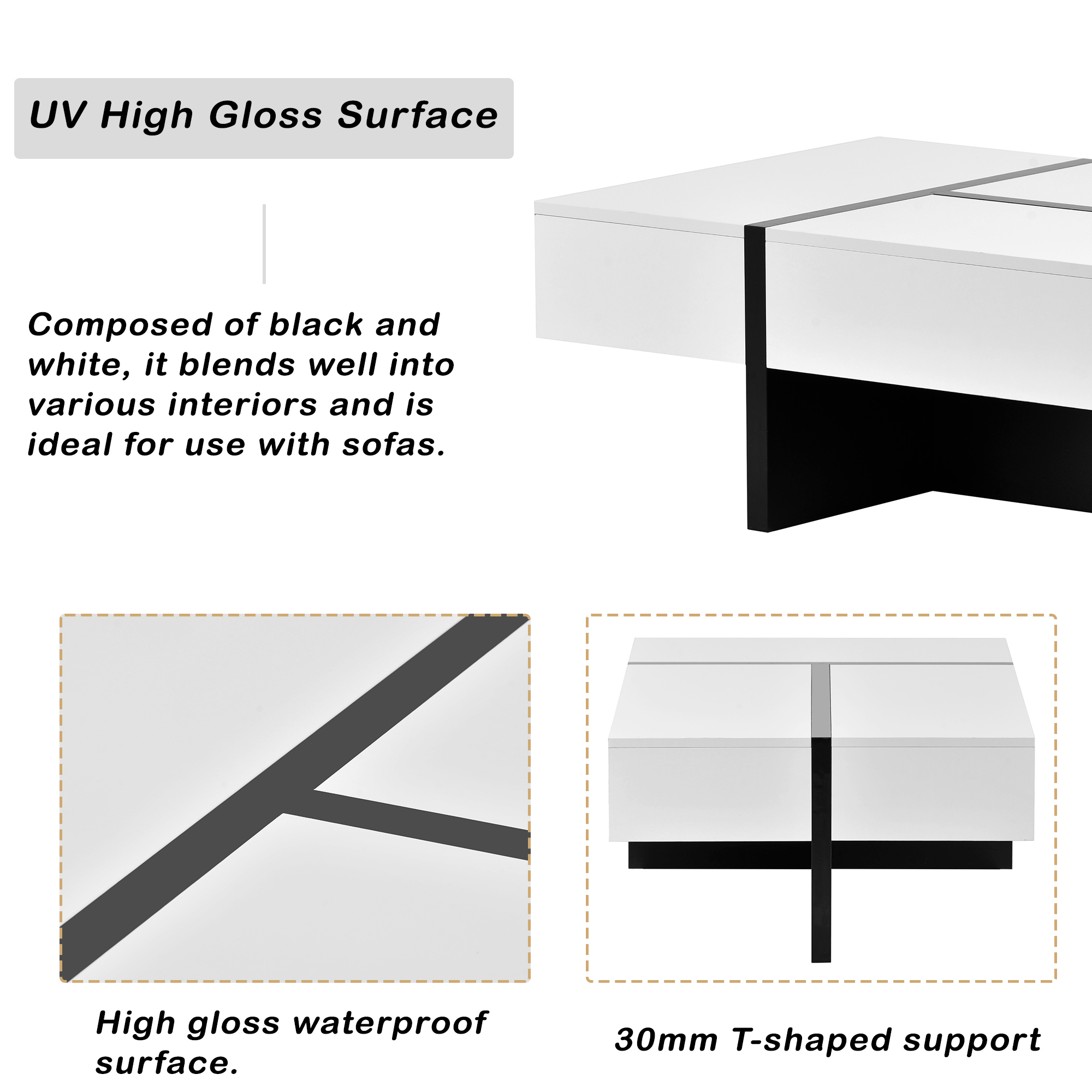 The coffee table is supported by two long boards with a thickness of 30mm. The bottom T-shaped support is very stable, but during use, you still need to pay attention to avoid placing heavy items on the corner of the table to prevent the table from tipping over.