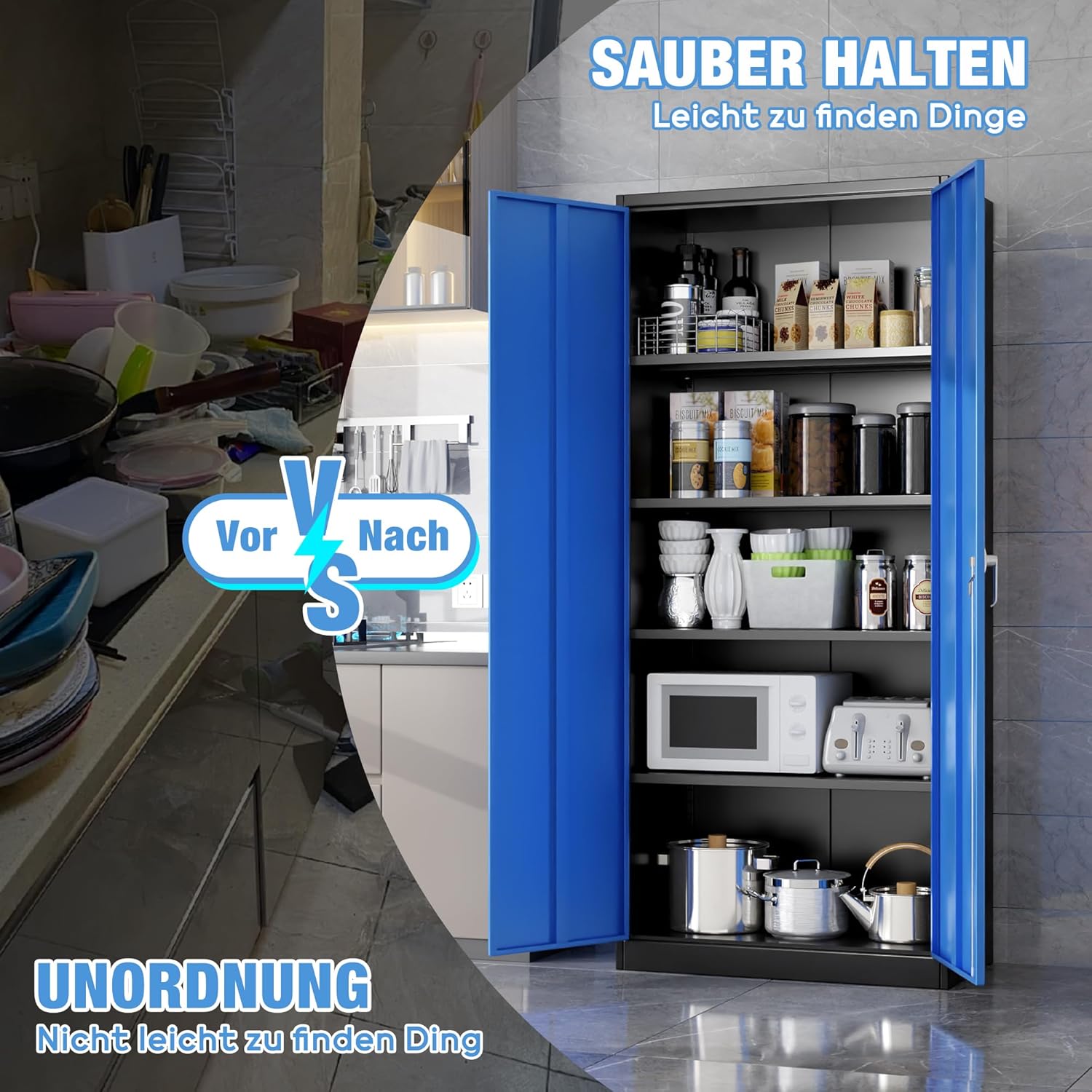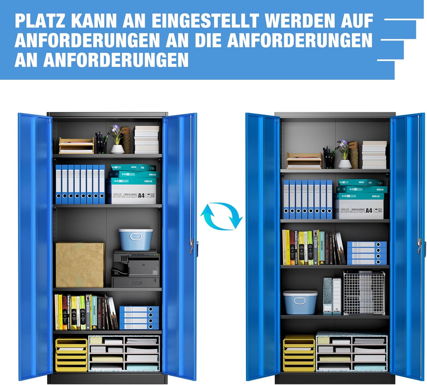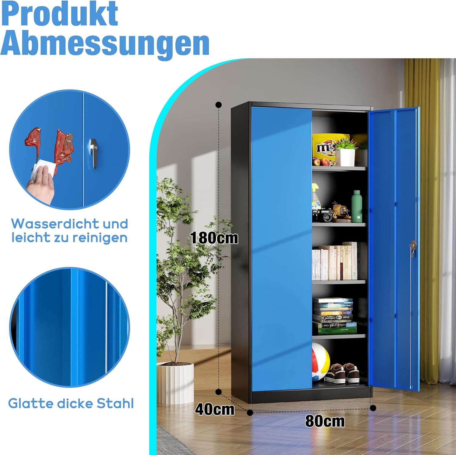 SUPEER Filing Cabinet, Metal Cabinet With 4 Height-Adjustable Shelves, Sheet Steel Powder Coating, Steel Cabinet For Tools, Garage H 180 Cm X W 80 Cm