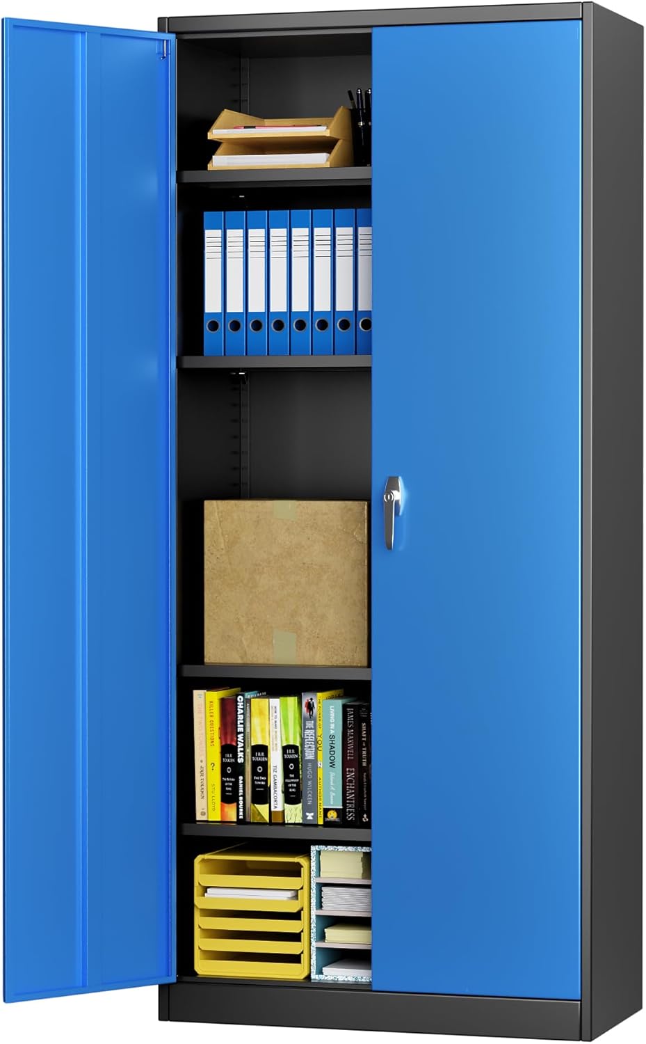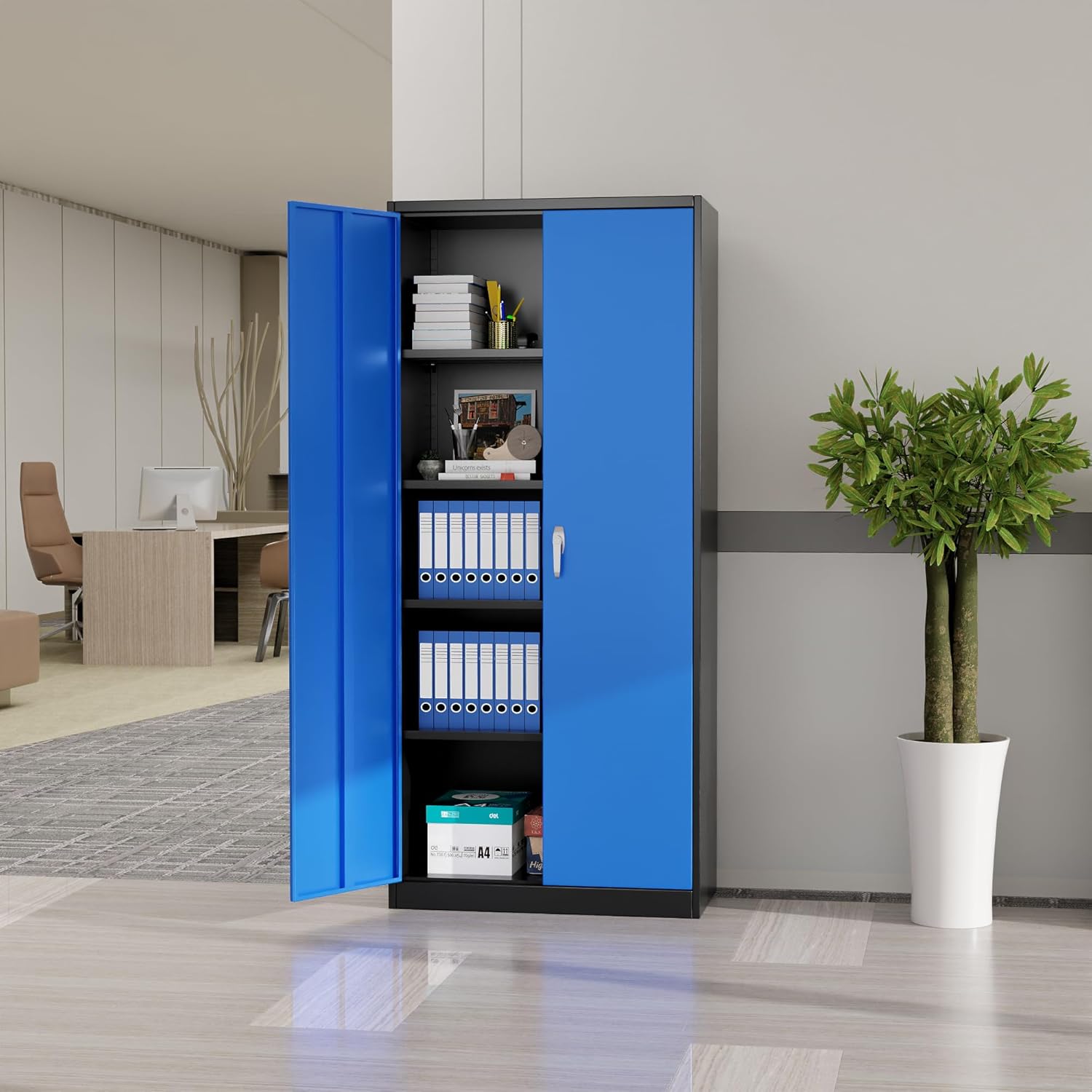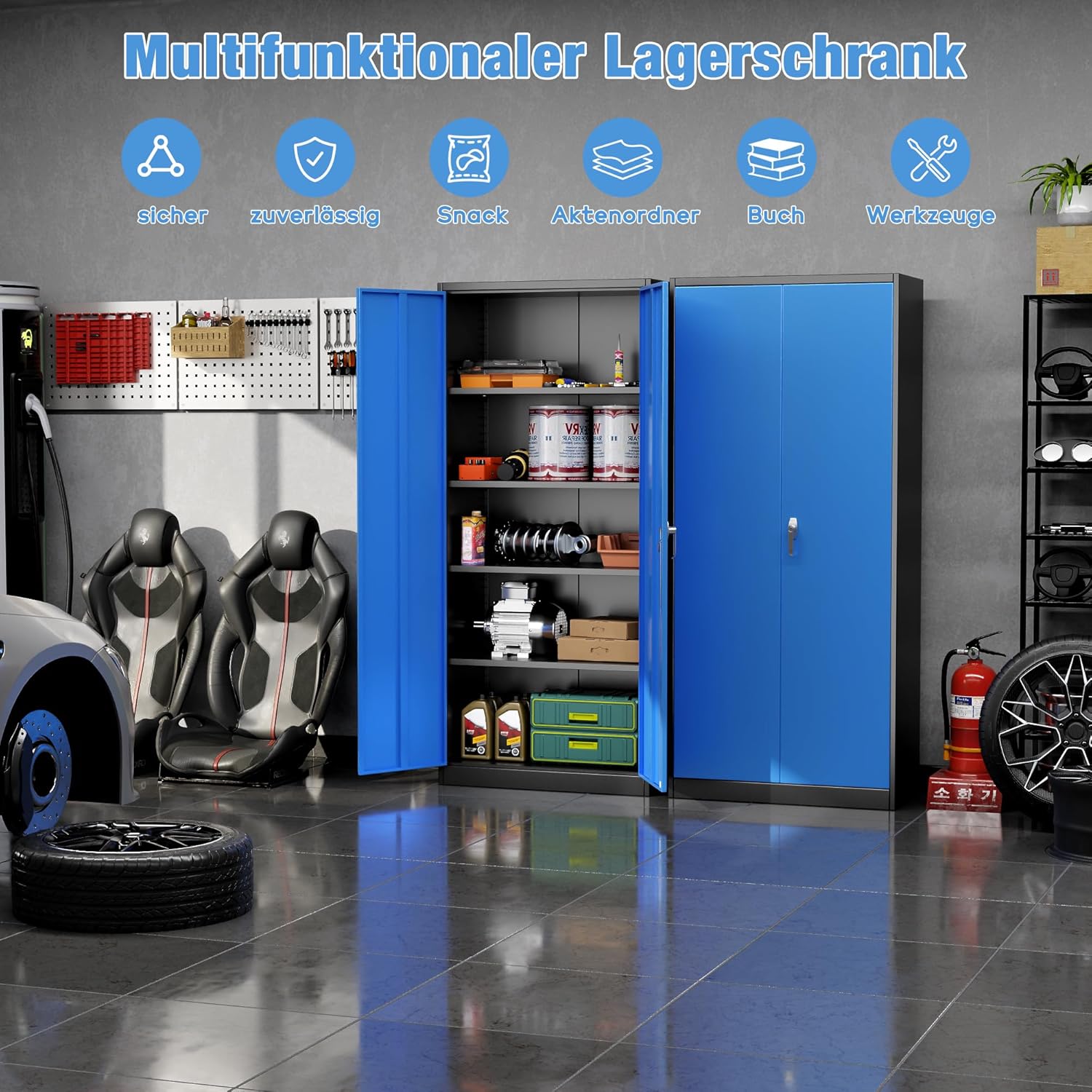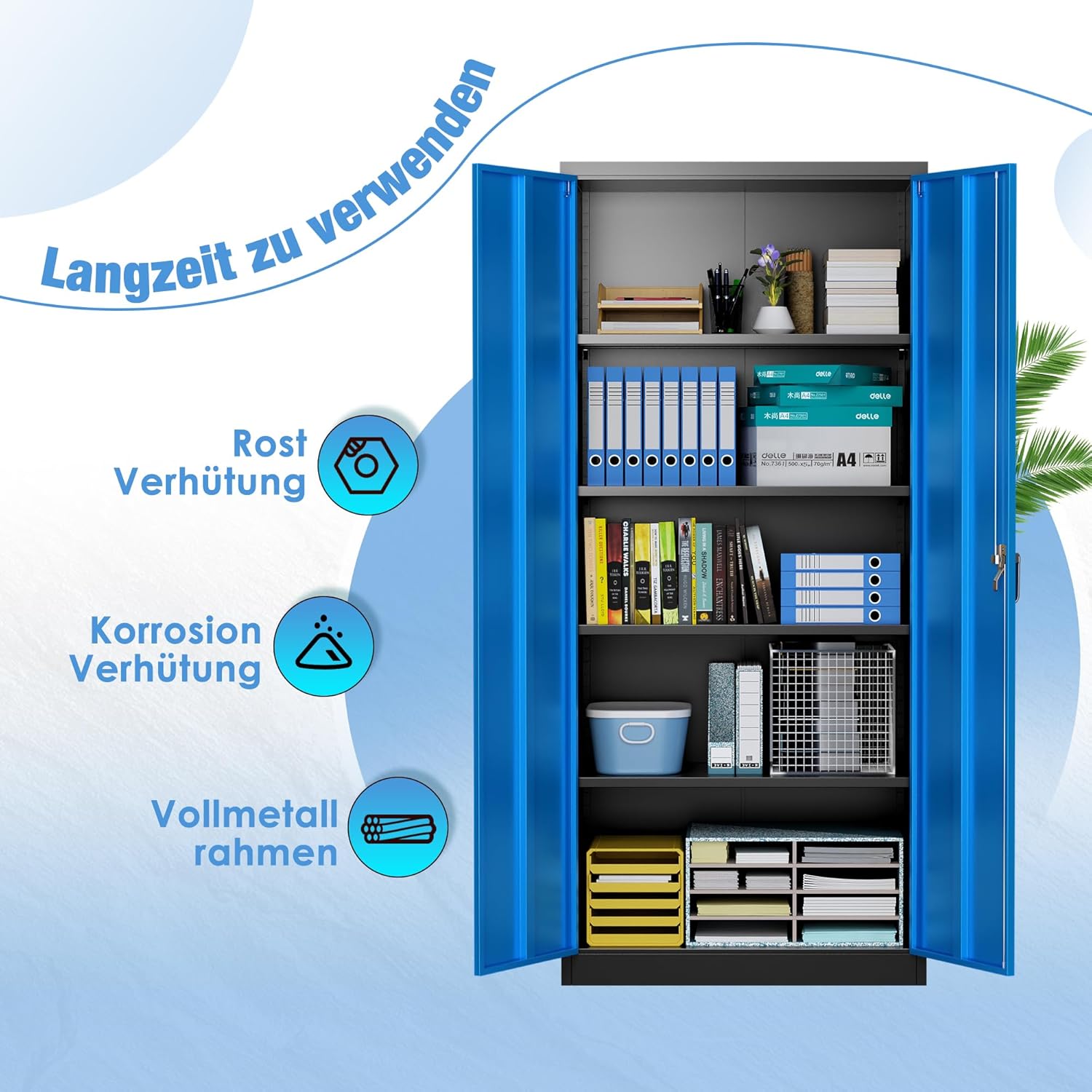 SUPEER Filing Cabinet, Metal Cabinet With 4 Height-Adjustable Shelves, Sheet Steel Powder Coating, Steel Cabinet For Tools, Garage H 180 Cm X W 80 Cm