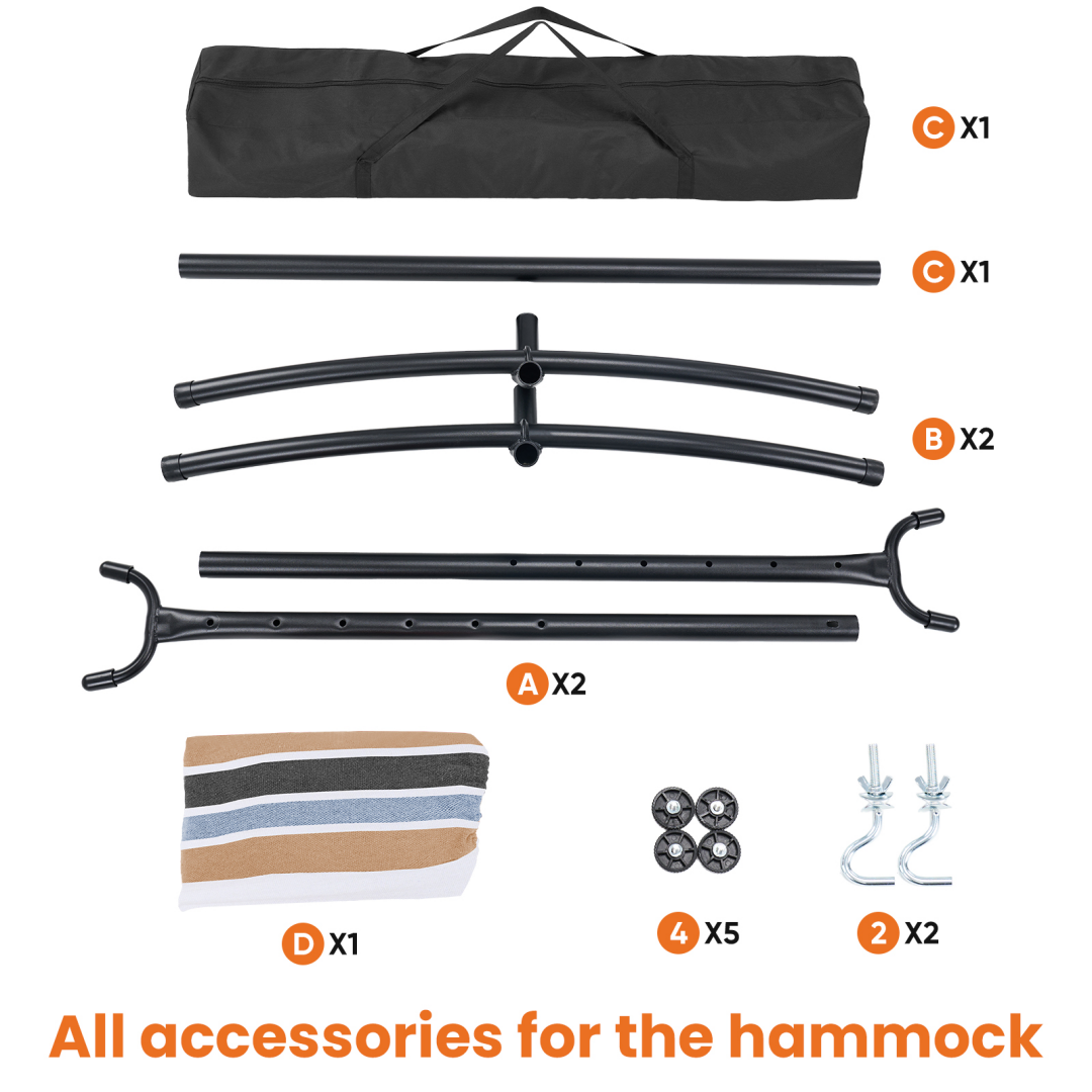 • 【Quick & Tool-Free Setup】No tools needed—assemble the steel stand and attach the hammock in just minutes, making relaxation quick and effortless.