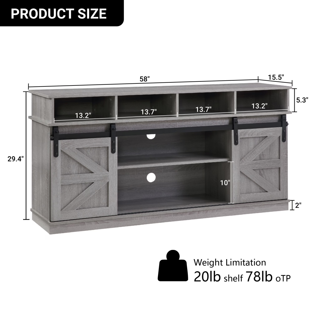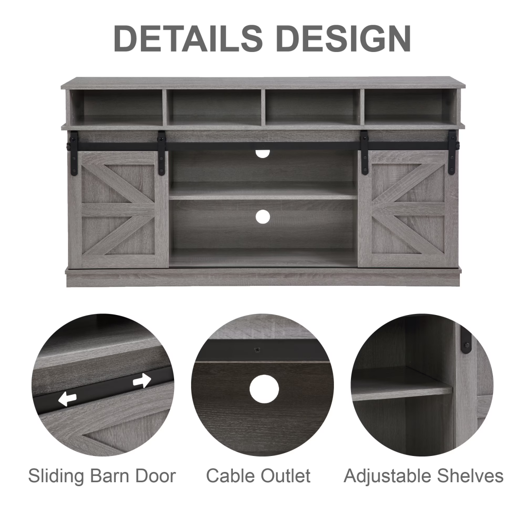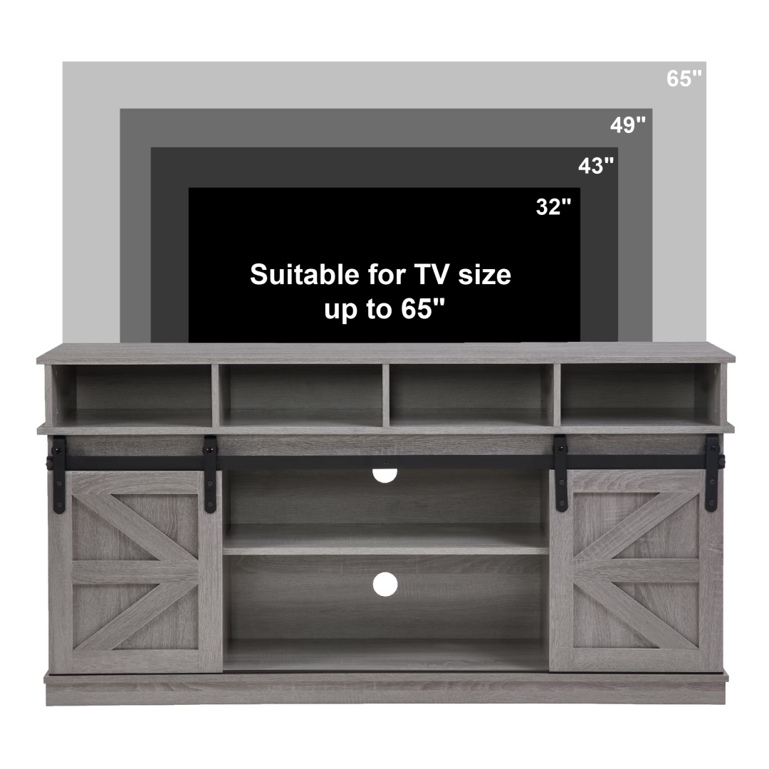 Product Name: TV Stand Sliding Barn Door Modern&Farmhouse Wood Entertainment Center, Storage Cabinet Table Living Room with Adjustable Shelves for TVs Up to 65",Grey