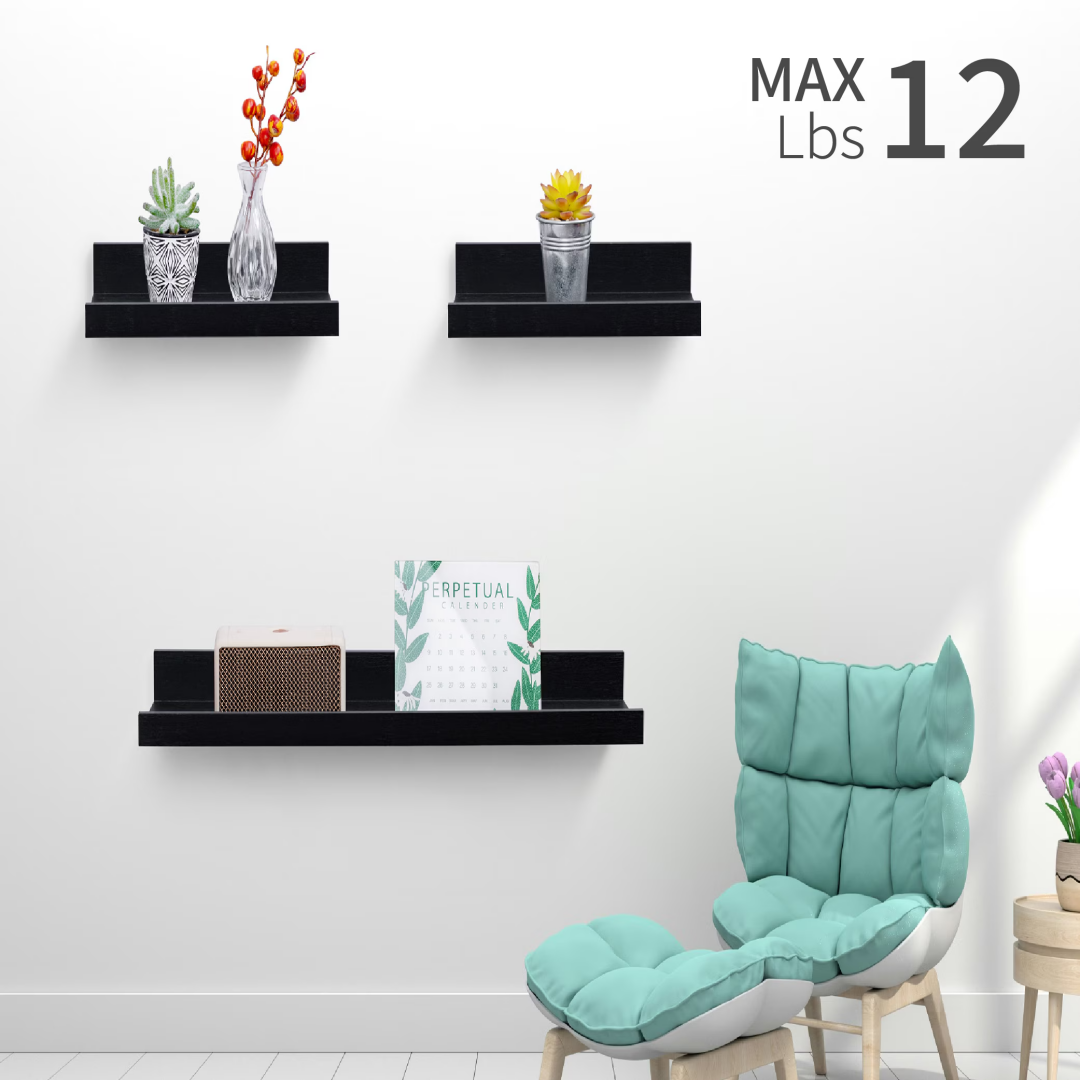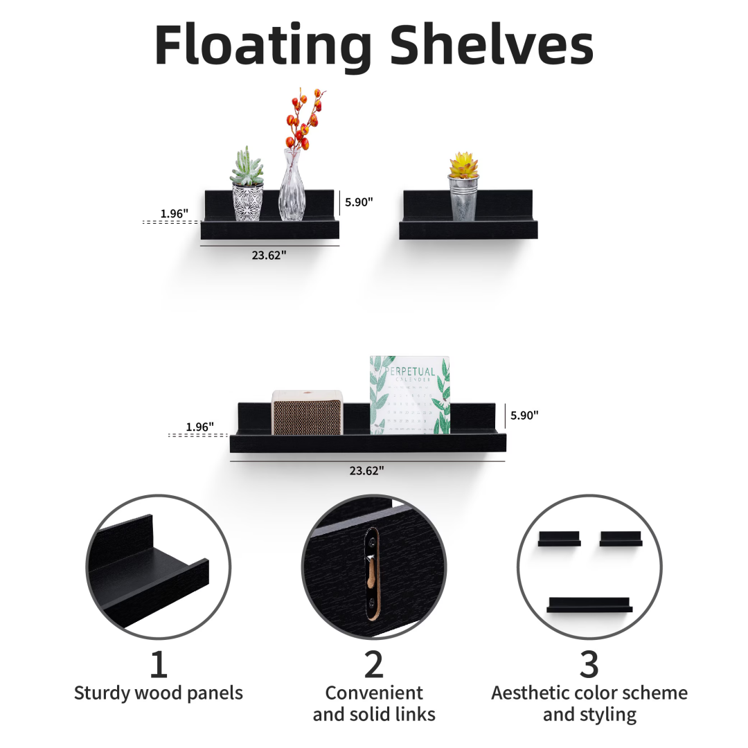 Product Name: Floating Shelves 23.62" Wall Mounted Wood Shelves for Bathroom, Bedroom, Living Room, Kitchen, Hanging Shelf for Books/Storage/Decor with Invisible Brackets, Black