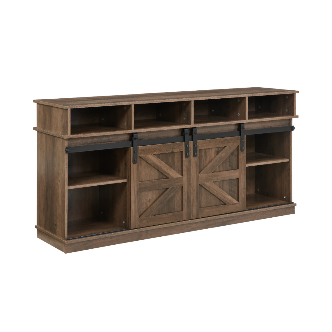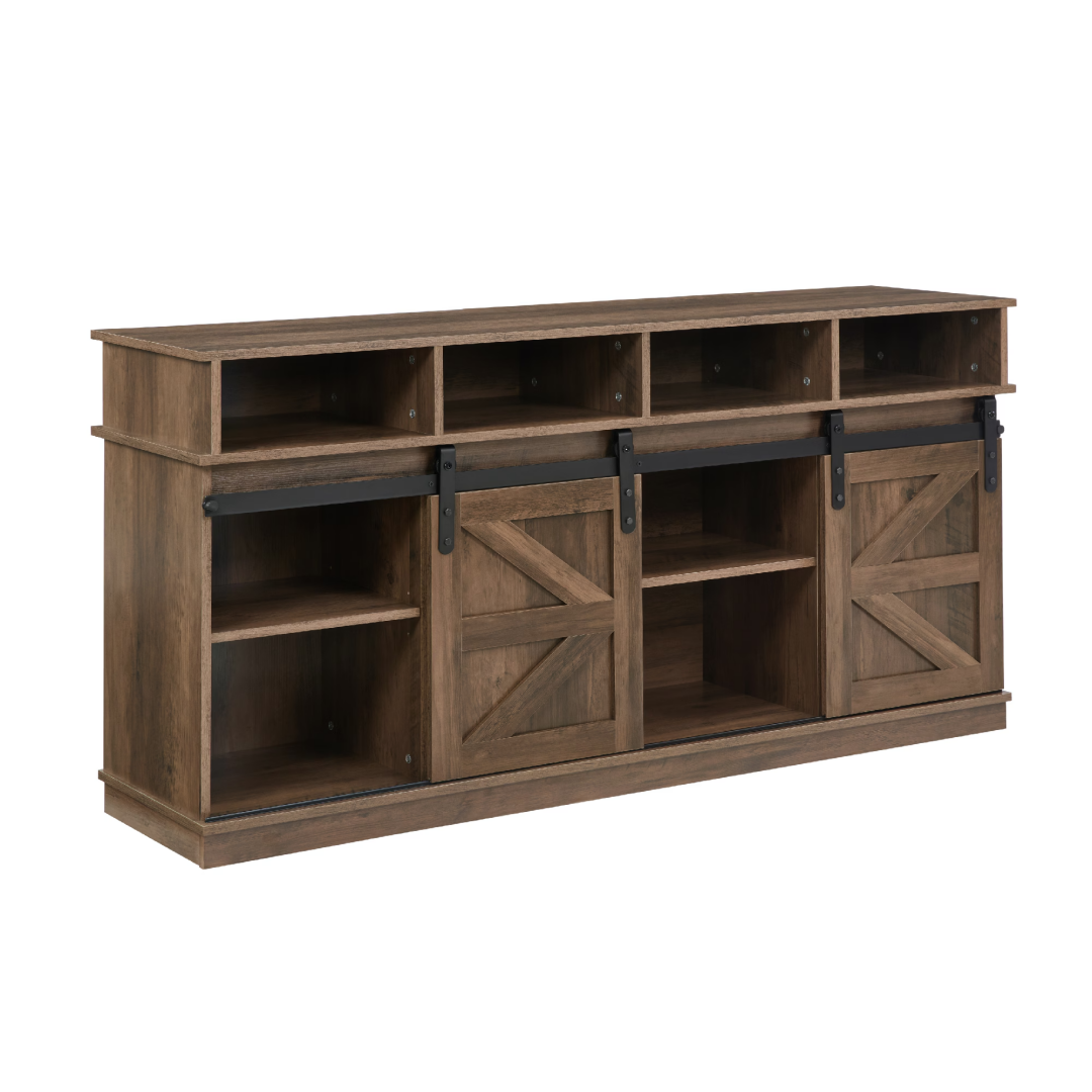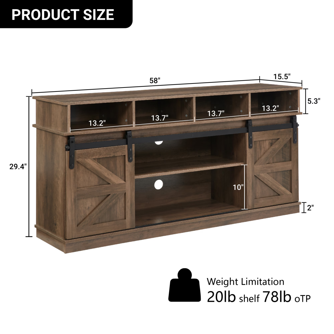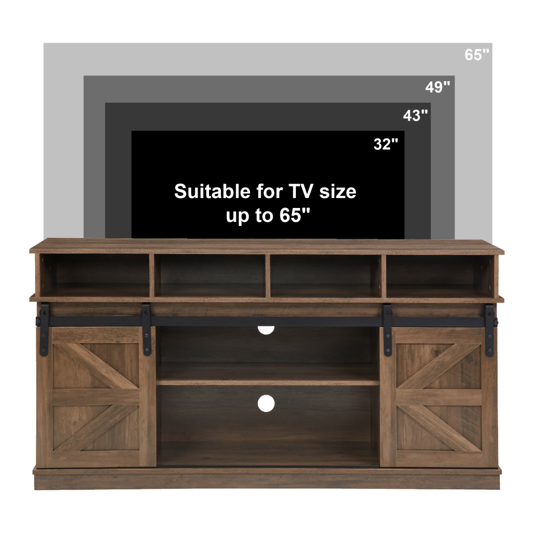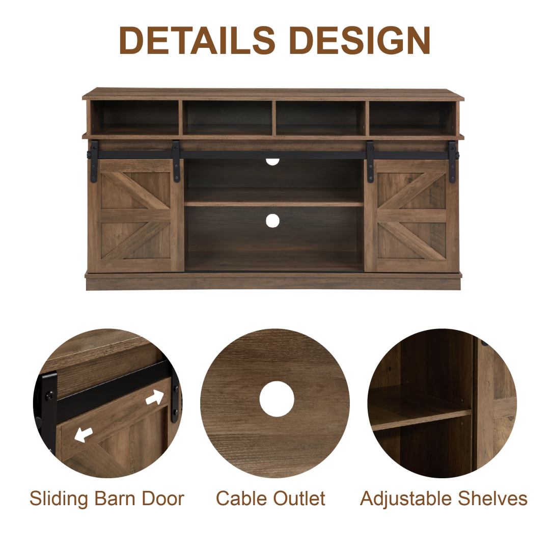 Product Name: TV Stand Sliding Barn Door Modern&Farmhouse Wood Entertainment Center, Storage Cabinet Table Living Room with Adjustable Shelves for TVs Up to 65",Natural Brown