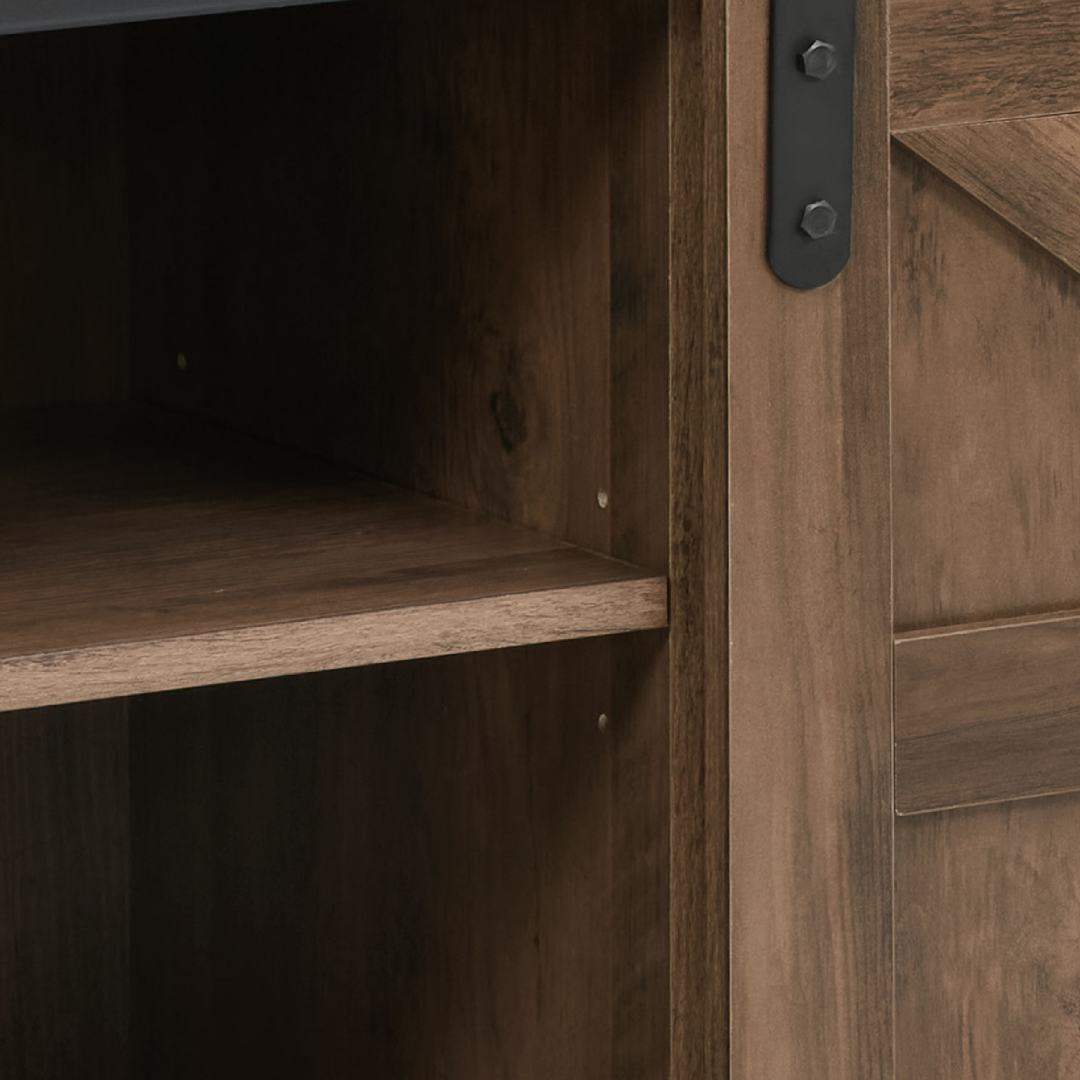 【Flexible Barn Doors, Neat and Private】: Equipped with two flexibly movable barn doors, which can not only ingeniously hide the side storage cabinets or the central cabinet, keeping the space always tidy and orderly, but also effectively protect your privacy. The support of the metal slide rails makes the doors slide smoothly and quietly.