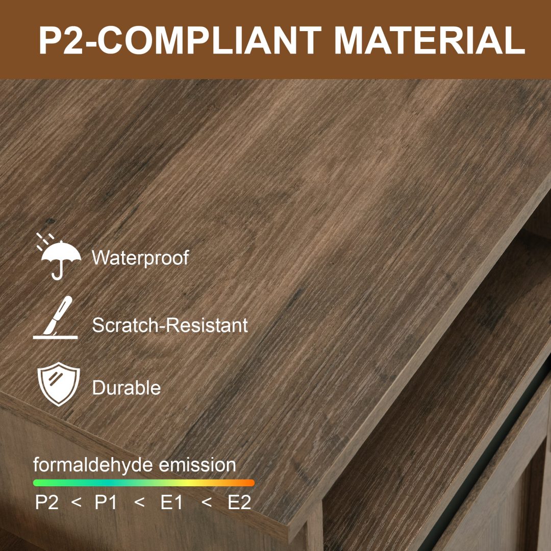 【High-quality Materials, Firm and Worry-free】: The entire piece is carefully selected with 14mm thick particle board, and the back panel is made of 3mm MDF material, which is solid, durable and not prone to deformation. The material reaches P2 grade with lower formaldehyde content, safeguarding the health of your home.